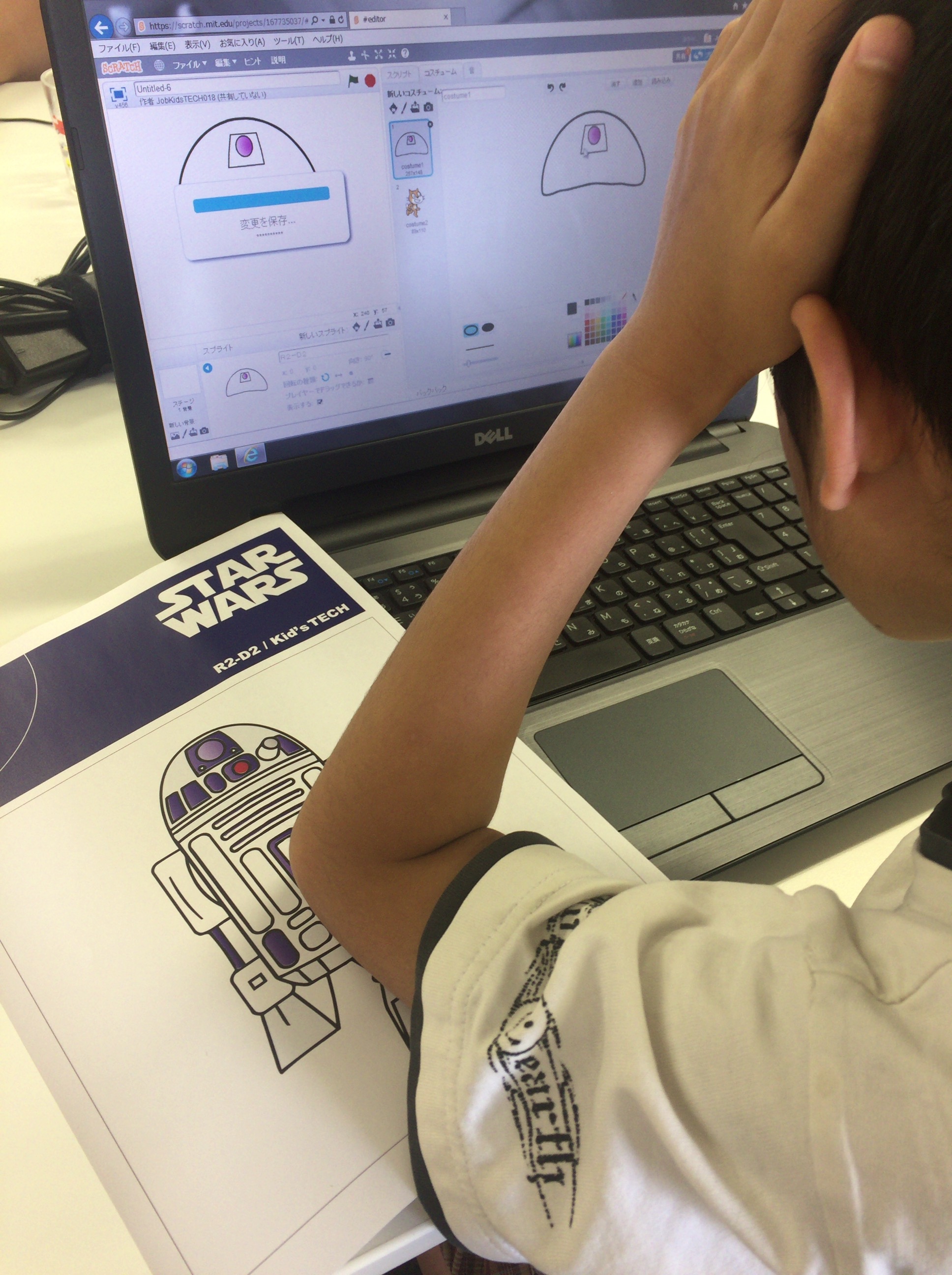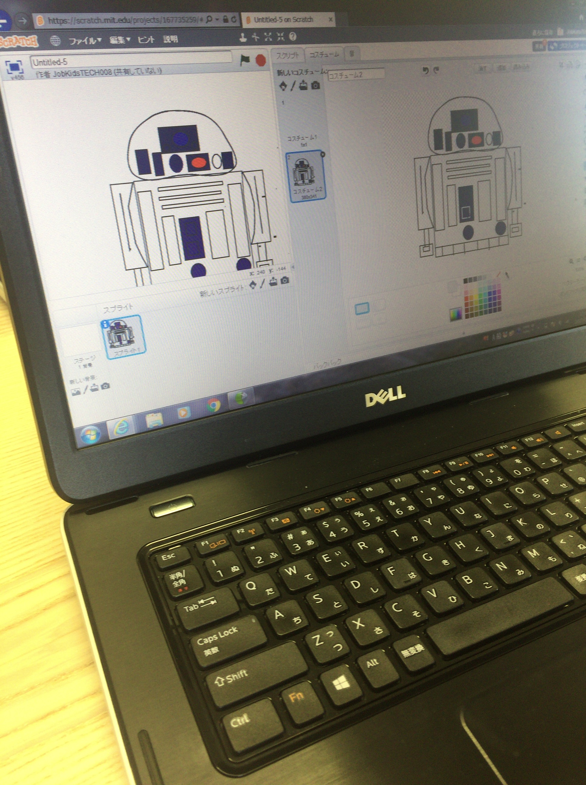 今回の授業は、子供向けの優れたプログラミング学習ツールとしてここ最近になって急速に認知されつつある、『Scratch』というツールの描画機能を使ってR2-D2を描かせてみました。